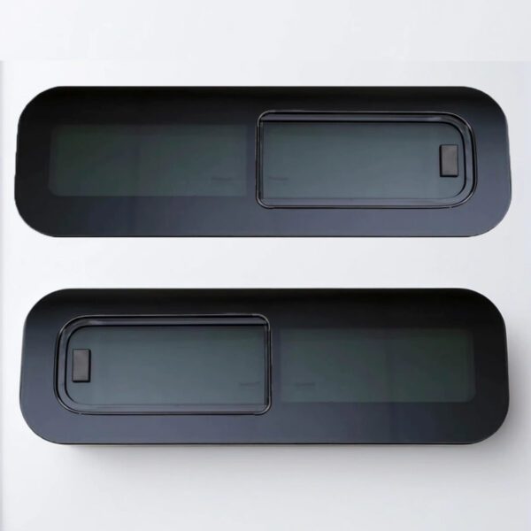 Our Universal 800 mm × 270 mm (driver & passenger side) sliding windows are designed for van conversions, camper-vans, caravans, horse-boxes or any leisure vehicle with a flat side panel. With sleek design, dark-tinted toughened glass and European manufacturing standards, you get both form and function. Widely used in the sleeping rear area of the vans/campers.