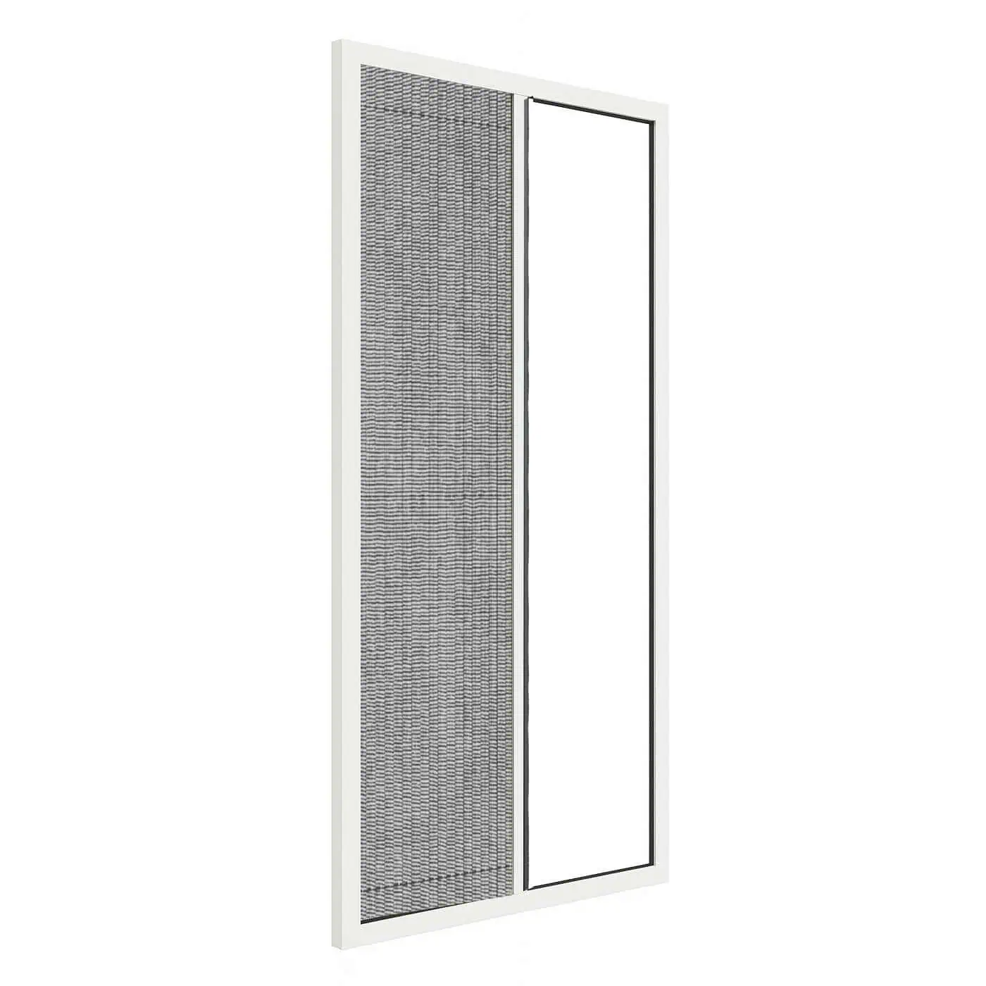 Lightweight and simple to use, this flyscreen unit can be opened and closed by pulling the screen by hand to slide it along its tracks.
